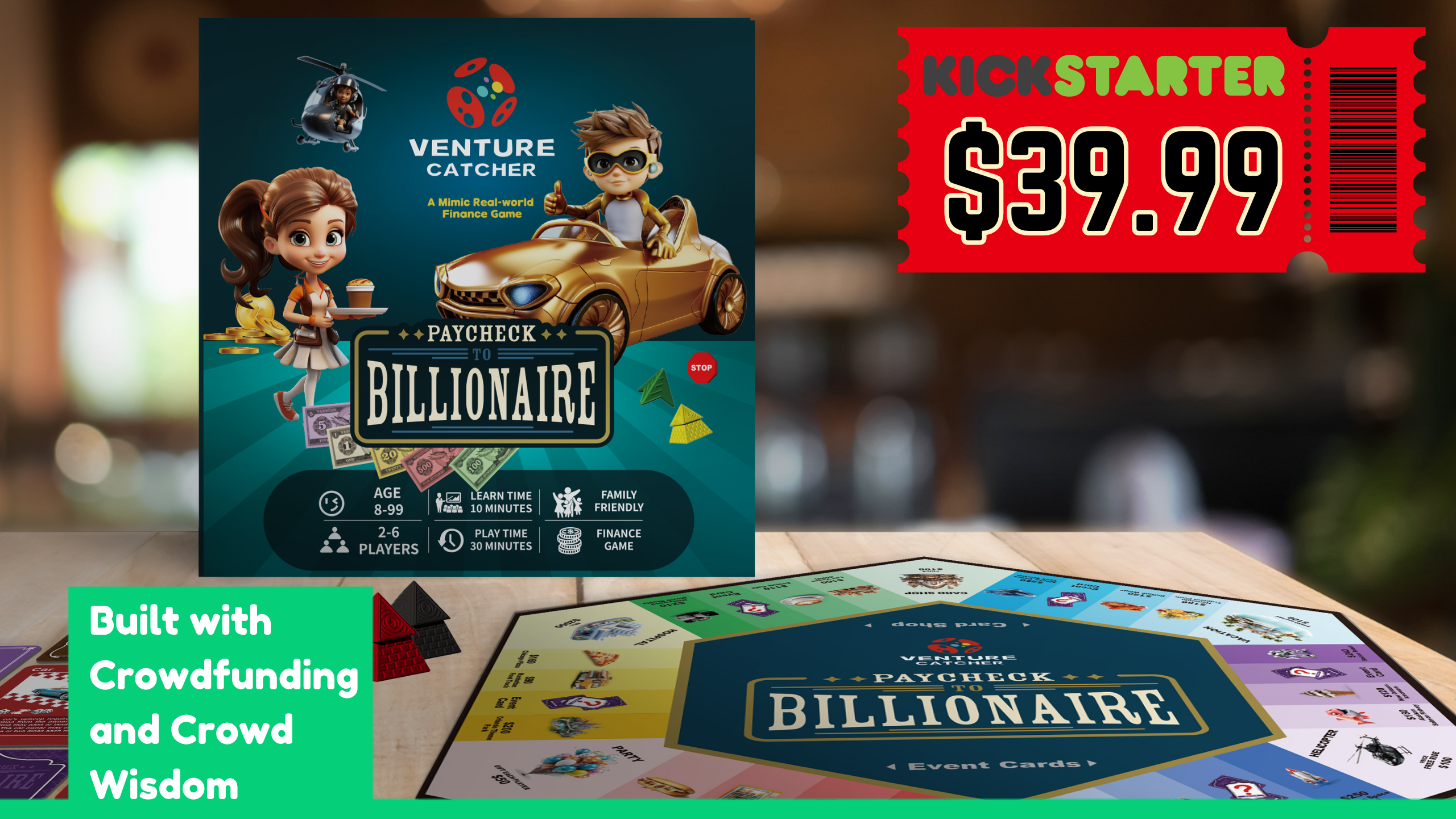 Philadelphia, PA – Venture Catcher Studio announced they are developing PAYCHECK TO BILLIONAIRE, a groundbreaking board game designed to redefine financial literacy with a real-world, immersive learning experience. This innovative game is poised to eclipse traditional financial board games like MONOPOLY by emphasizing modern, realistic paths to success beyond the concept of monopolization.